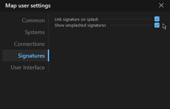 • In the Signatures section, enable the ‘Link signature on splash’ and ‘Show unsplashed signatures’